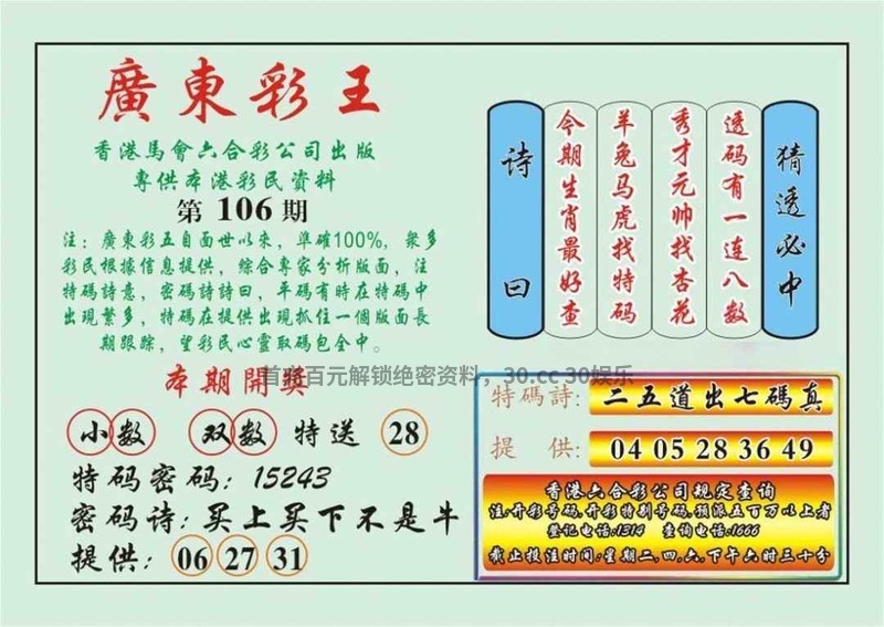 106期:六肖中特【狗龙猴马牛】开:猪43准